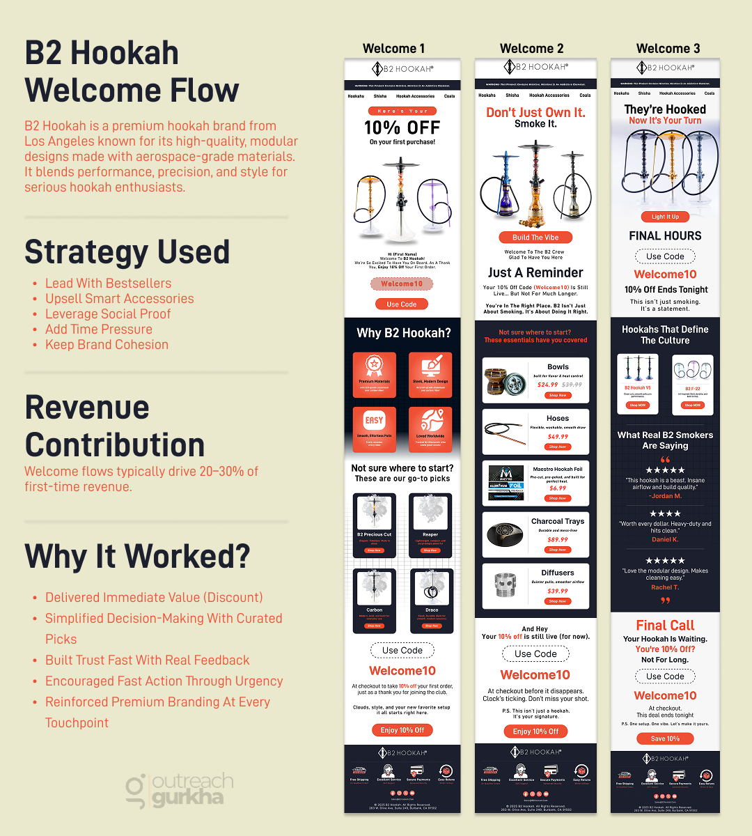 After our first call with Outreach Gurkha, they set up everything quickly from flows to campaigns. Within a week, 45% of our sales came from email alone. One of the best decisions we’ve made.